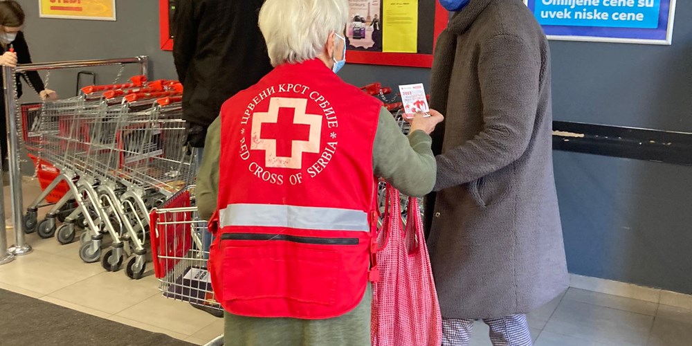 Saradnici i volonteri naših organizacija Crvenog su na ulazu u objekat pozivali sugrađane da kupe namirnice za pripremu paketa solidarnosti. Nakon kupovine, sugrađani su opredeljene artikle ostavljali našim volonterima koji su dežurali na izlazu iz objekta.